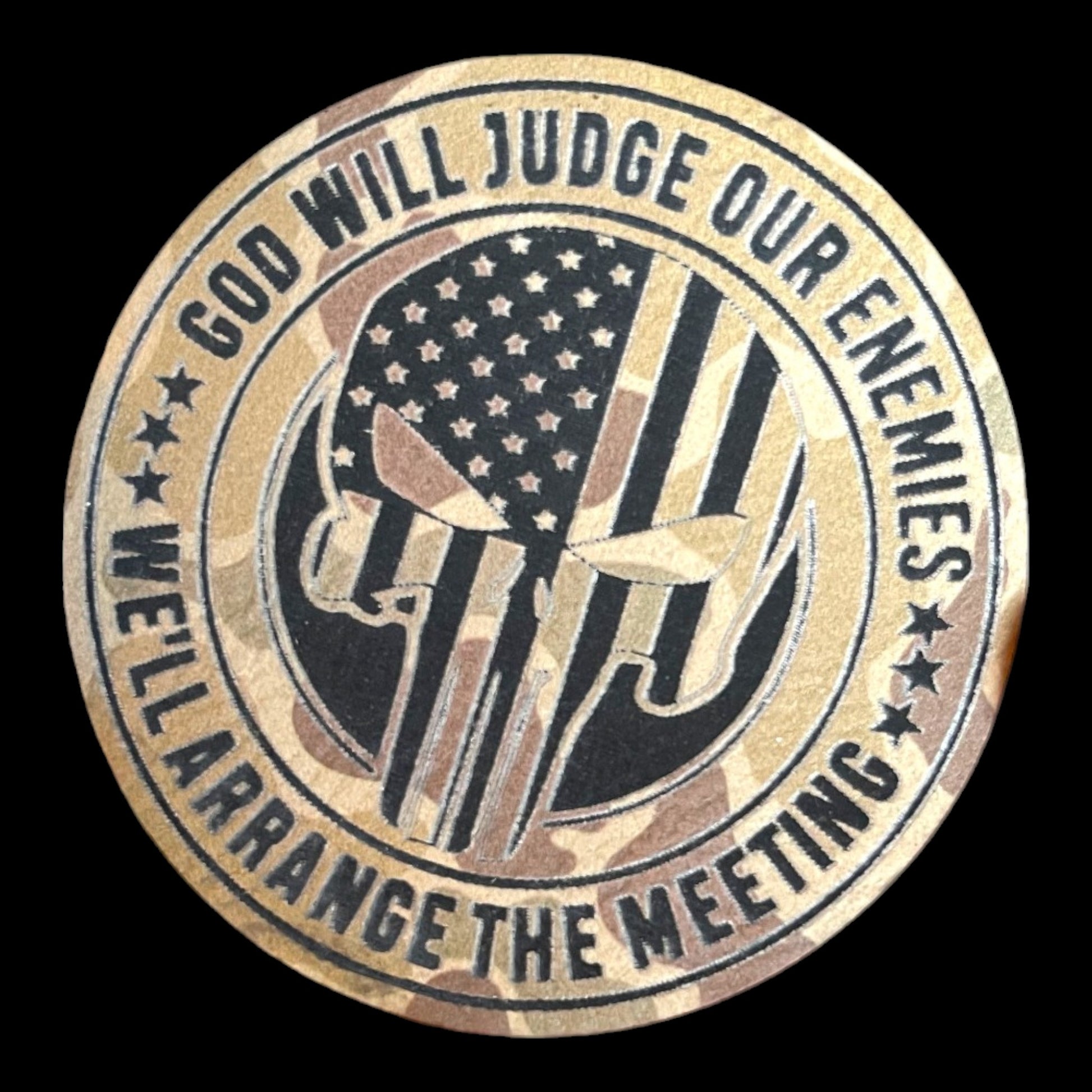 Leatherette Patch - 2.5 inch. (Size can be customized) God Will Judge Our Enemies We'll Arrange The Meeting